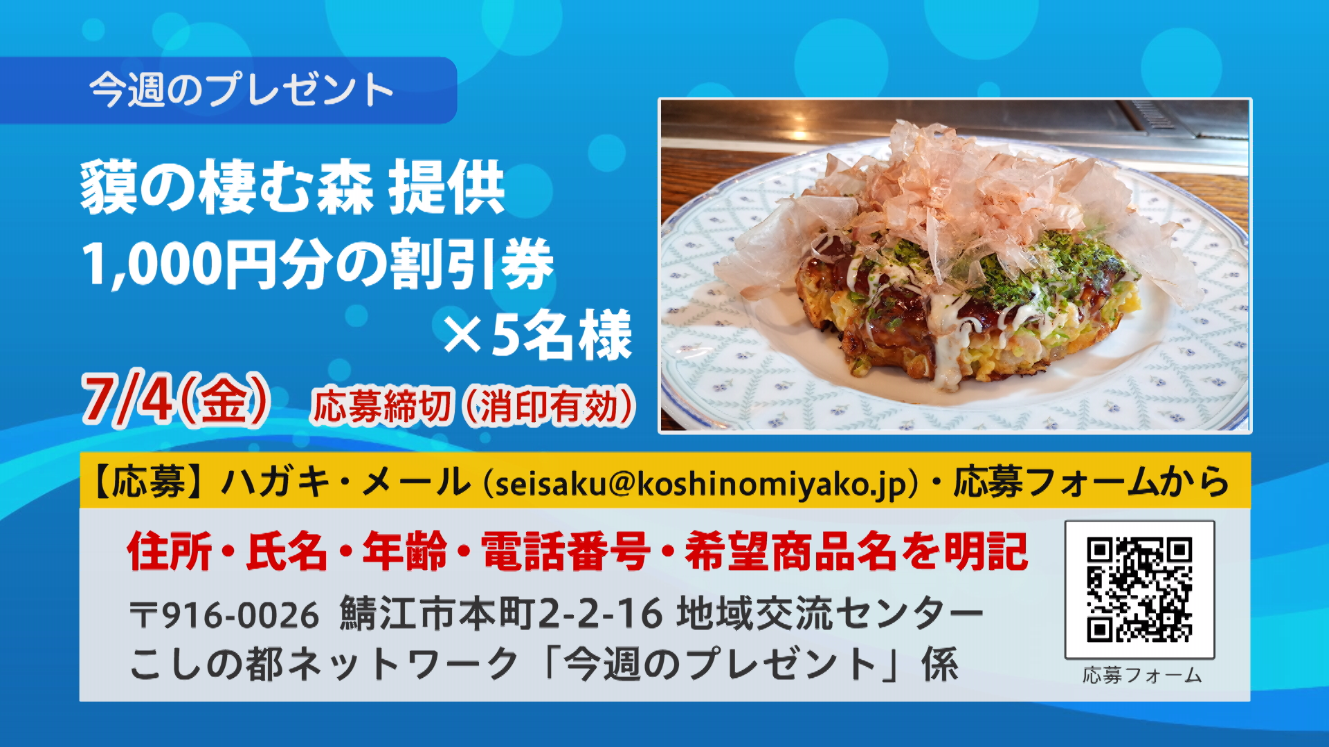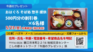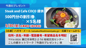 2.季節のおやつしずく提供_500円分の割引券×6名様:応募締切:12月19日(金)