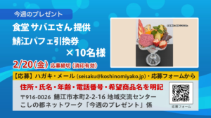 1.食堂サバエさん提供_鯖江パフェ引換券×10名様:応募締切:2月20日(金)